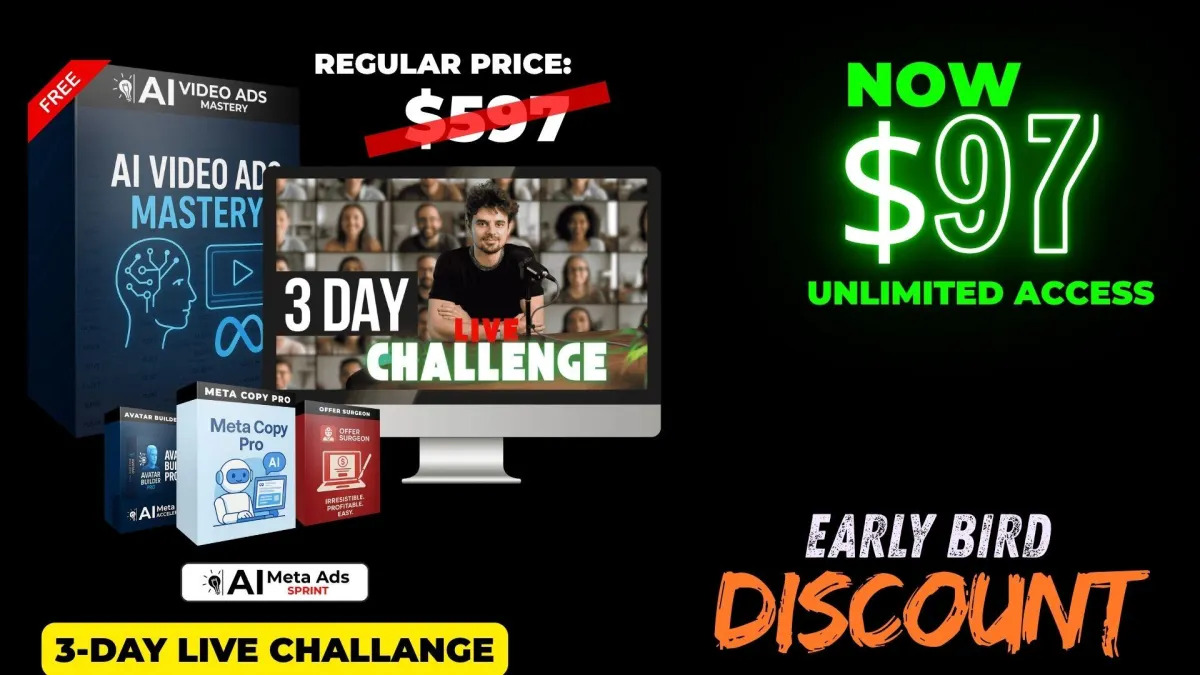 For a limited time, we’re including our full AI Video Ads Mastery Course, plus bonus modules, at no extra cost.