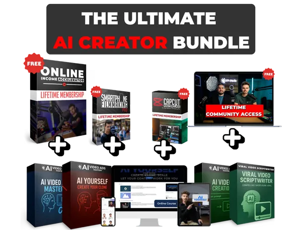The AI Creator Bundle gives you lifetime access to four programs that show you how to create high-quality content fast and turn it into a real online income stream.